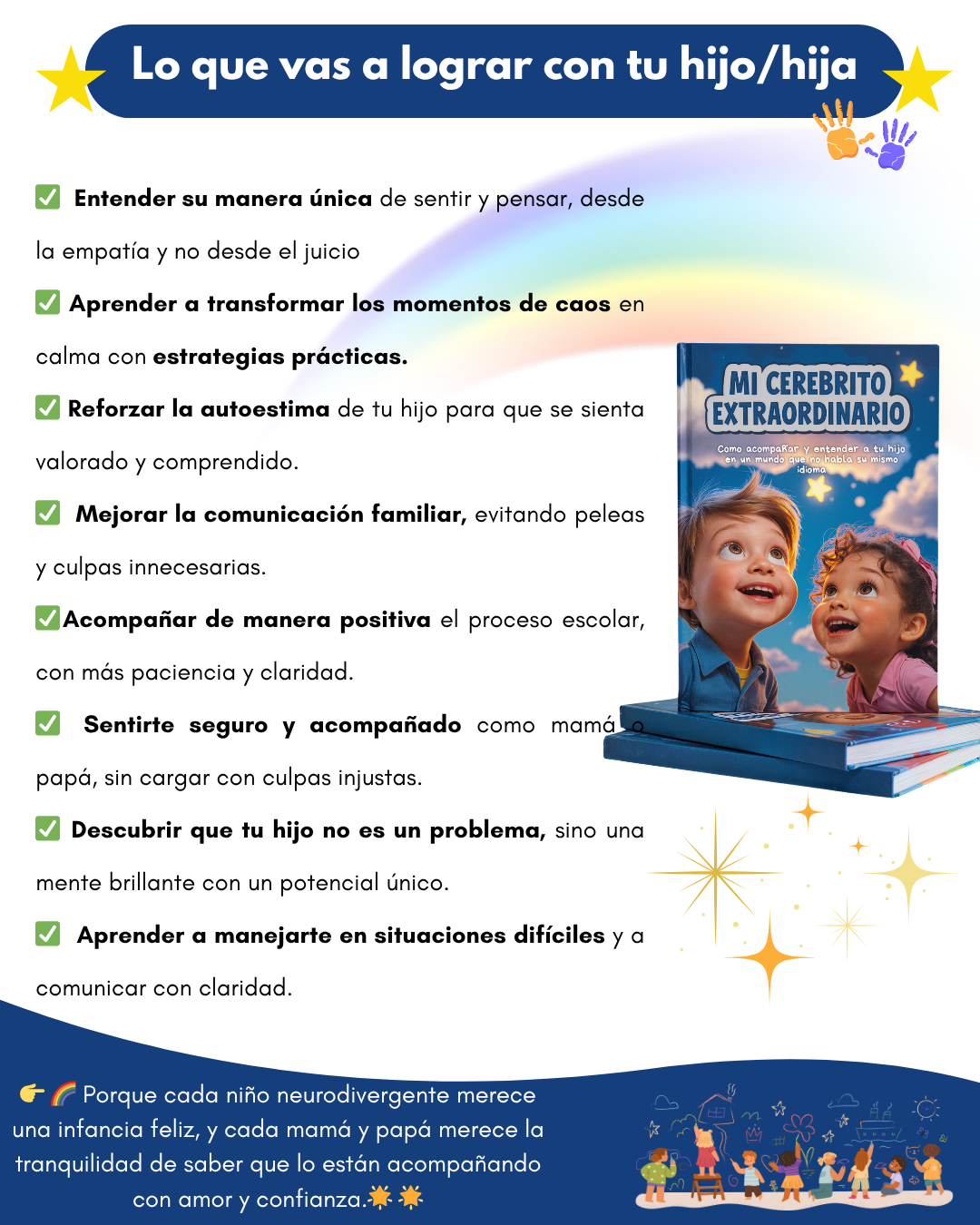 💜 No estás solo. Mi Cerebrito Extraordinario fue creado para darte claridad, esperanza y herramientas reales para transformar la incomprensión en calma, amor y conexión verdadera con tu hijo.